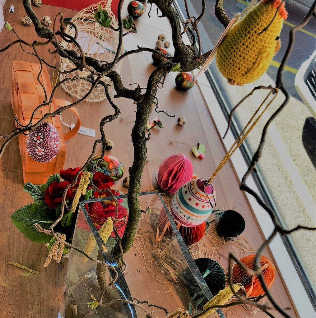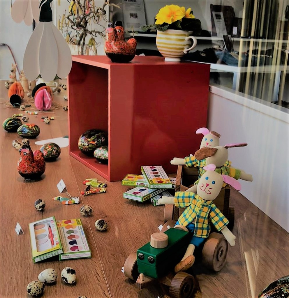 Der Claro-Laden in Bätterkinden hat sich bereits auf Ostern eingestimmt und die Schaufenster neu dekoriert. Mit handgefertigter Osterdeko in fröhlich-bunten Farben und von kleinen Werkstätten aus dem Weltsüden.