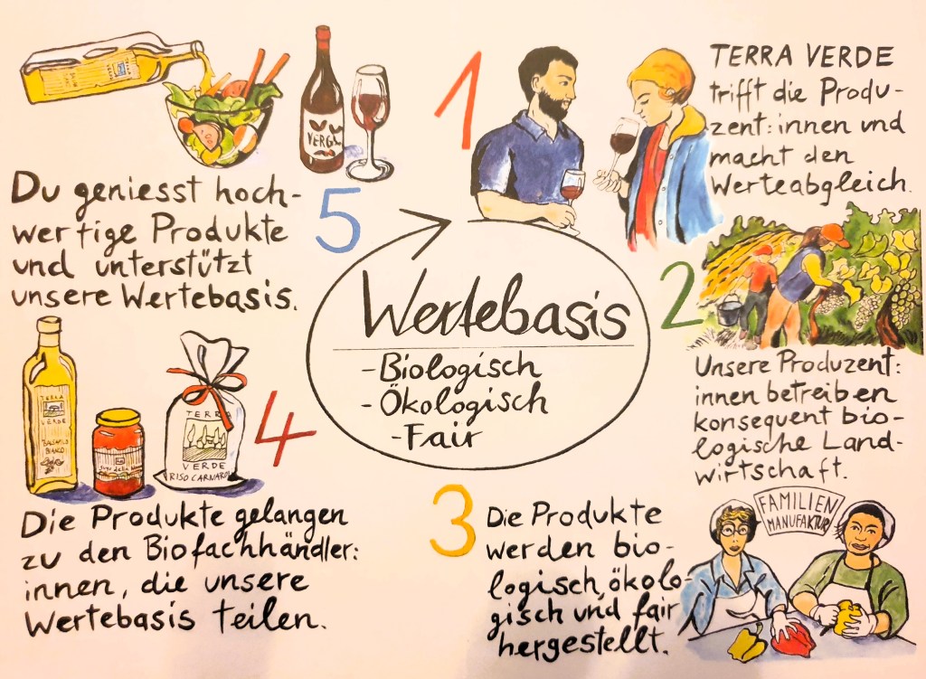 Geschäftsleiter Martin Schiller gab uns einen sehr persönlichen Einblick in einige der Partnerprojekte in Italien. Er erklärte uns, wie der feine Balsamico Terra Verde in Holzfässern reift, wie die Olivenernte organisiert ist, bei der er auch gerne selbst Hand anlegt, und wie feinste Bio-Tomaten zu Passata di Pomodoro verarbeitet werden.